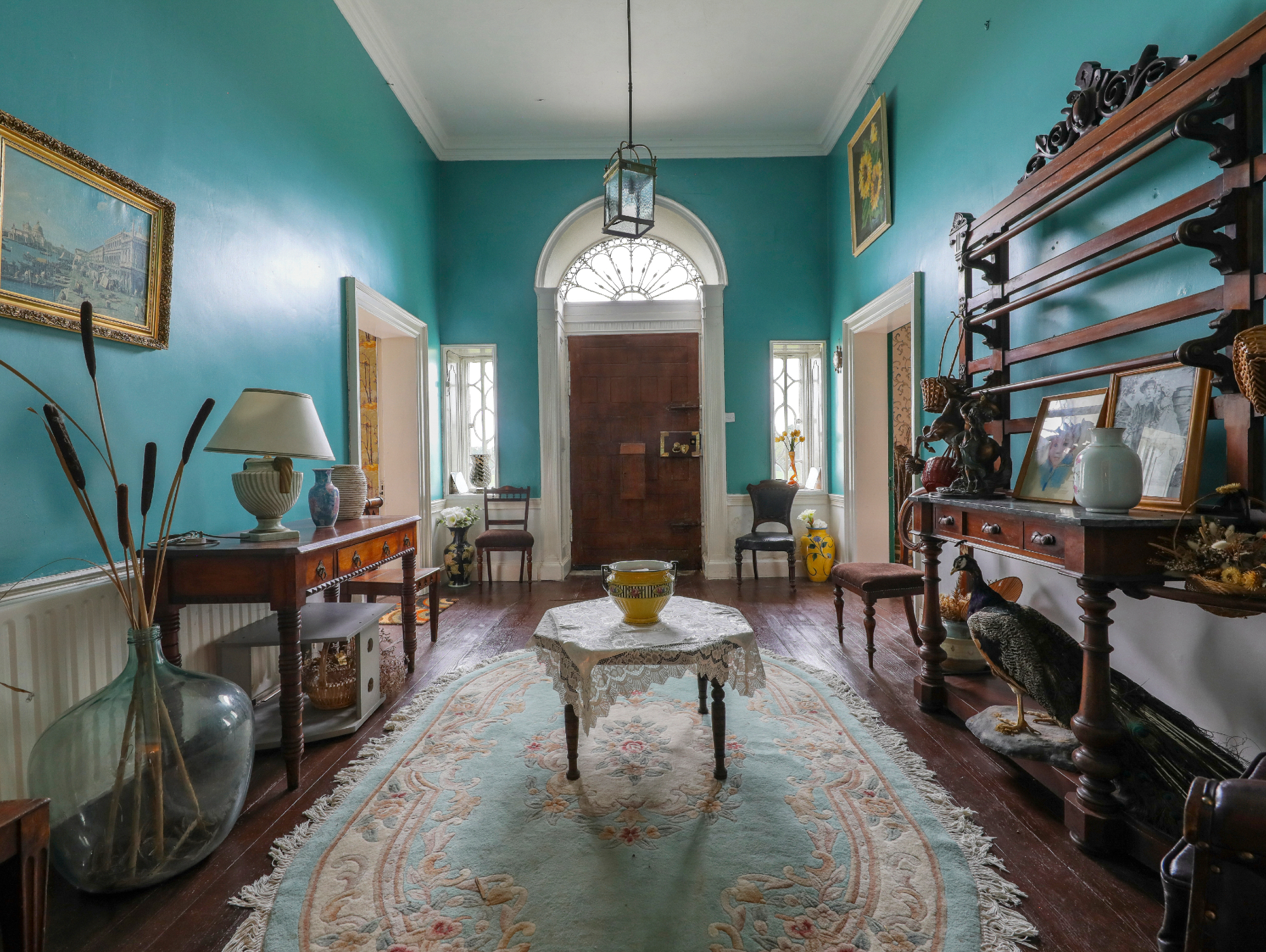 Monalty House dates to the 1760s although evidence of an earlier house on the site comes in the form of a survey (1735) commissioned by Viscount Weymouth where it is shown as a dormered single-storey house approached by a tree-lined avenue. The original layout of Monalty House is fully intact with sixteen rooms across three storeys, a central hallway divided into two, and a full basement. A three-storey bathroom return was added in 1910 by the well-known architect and engineer, William Samuel Barber (1877/8-1941), and includes seven stained glass windows in a simple Art Nouveau style.