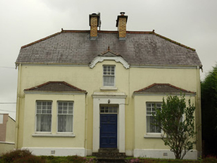 Detached three-bay two-storey with dormer attic former parochial house, built c. 1880, having single-storey canted bay window to the north-east end bay of the front elevation (south-east) having hippe...