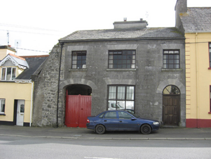 End-of-terrace three-bay two-storey house, built c.1880, with attic and having shopfront to front (north) elevation and two-storey addition to rear. Pitched artificial slate roof with dressed limesto...