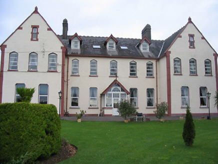 Detached eleven-bay two-storey convent with dormer attic, c.1875, on a U-shaped plan comprising five-bay two-storey central block with single-bay single-storey gabled projecting glazed porch to centre...