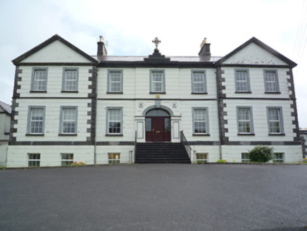 Five-bay two-storey former convent with basement, dated 1874, with gabled entrance breakfront to front elevation, chapel addition to south-east and single-storey addition to north-west. Hipped slate r...