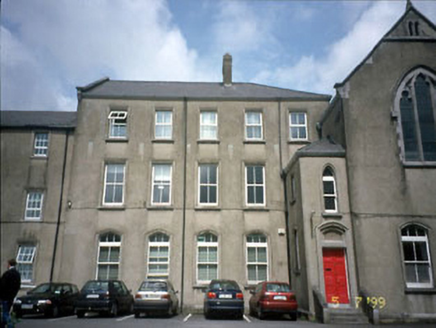 Detached eighteen-bay three-storey convent, dated 1886, possibly originally nine-bay retaining early fenestration with six-bay three-storey advanced bay to rear elevation to north-west. Reroofed, c.1...