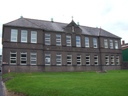Detached U-plan twelve-bay two-storey school, dated 1914, having gablet and projecting end-bays to front (south) elevation, full height veranda and extensions to rear. Hipped slate roof with terracot...