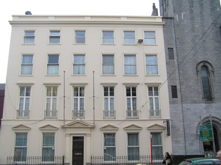 Attached six-bay four-storey over sunken basement former club house, built in 1810, facing west and formely associated with the adjacent Augustinian church possibly in c. 1816. M-profiled gable-ended ...