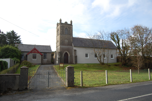 Detached Church of Ireland church, built c.1810, comprising four-bay nave with engaged tower with spire, projecting chancel to east and vestry. Pitched slate roof with stone coping, finials, cast-iro...