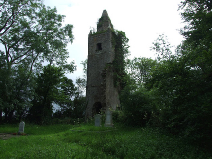 Remains of former Church of Ireland church, built c. 1530 and altered c. 1733 and c. 1760, having remains of three-storey tower (on square-plan) to the south-west end, added c. 1760. Now derelict and ...