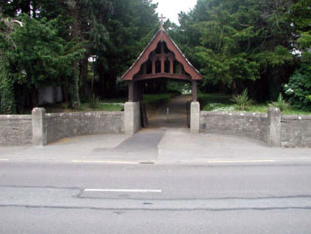 Irregular-plan graveyard, established c. 1300, having ruined church of c. 1610 and inscribed gravestones and markers from eighteenth century to present date, tarmacadam paths, and gable-fronted limest...