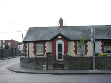 Semi-detached two-bay single-storey house, c.1910, with door to side. Roughcast rendered walls. Timber sash windows. Hipped slate roof with brick chimney stack. Single-storey extension to side. I...