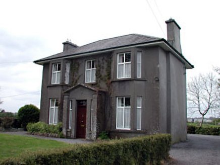 Detached three-bay two-storey rendered house, built c.1910, with full height canted bay windows. Projecting porch with flanking pilasters, open pediment, replacement door, and sidelights. Hipped sla...