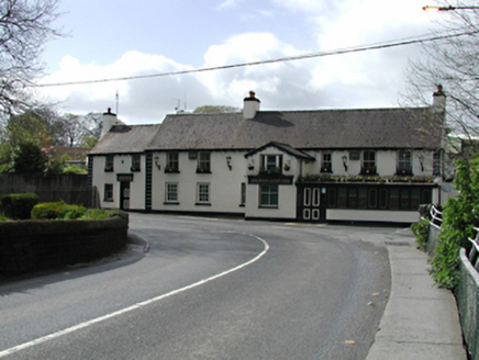 Detached nine-bay two-storey public house, c. 1850, with eastern two bays a later extension. Smooth rendered walls with base course and parallel quoins to corners. Square-headed window openings with...