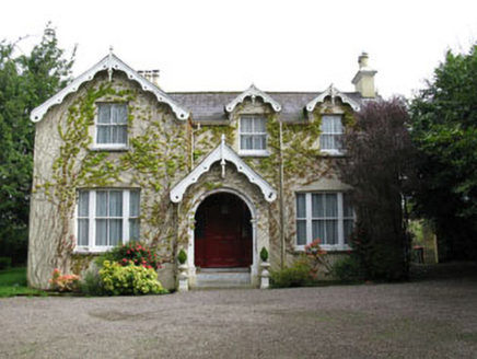 Detached four-bay two-storey house, built c. 1810, having three-bay single-storey lean-to to rear (north-west) elevation. Pitched slate roof with rendered chimneystacks and terracotta ridge crestings...