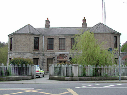 Semi-detached four-bay two-storey house, c.1830, now in office use. Smooth rendered walls with a projecting base course and quoins. Original round-headed door surround with decorated keystone suppor...