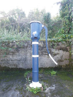 Freestanding cast-iron water pump, erected c. 1885. Comprising banded shaft with fluting to spout, decorative fluted cap and finial, and with curved pumping arm. Set on concrete base with drain to f...