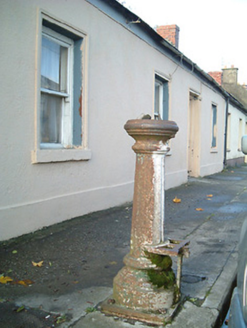 Freestanding cast-iron waterpump, erected c.1875, comprising banded cylindrical shaft with fluted head and fluted ogee-domed cap. Cow-tail curvilinear handle and projecting spout. Now disused. Located...