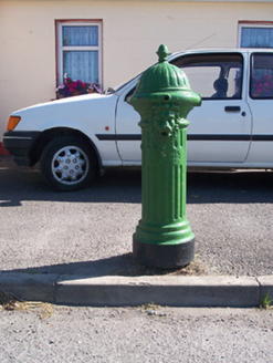Freestanding cast-iron water hydrant, erected c. 1900, comprising fluted shaft on moulded base with fluted domed capping over having ball finial. Spout now missing. Now disused. Located on footpath...