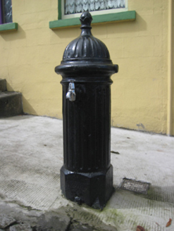 Freestanding cast-iron water hydrant, extant 1924. Now disused. Street fronted....