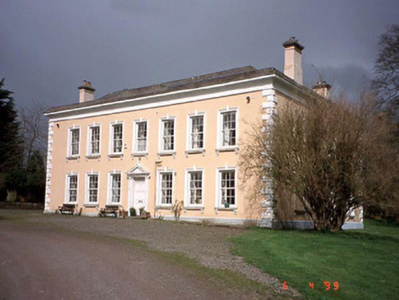 Detached seven-bay two-storey country house, c. 1785, with pedimented Doric doorcase. Extended, c. 1830, on a U-shaped plan. Renovated, c. 1860. Detached eight-bay stable block to site with integral carriageways. Undergoing refurbishment in 1999.