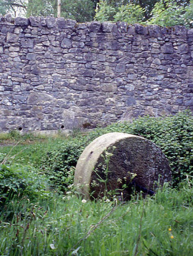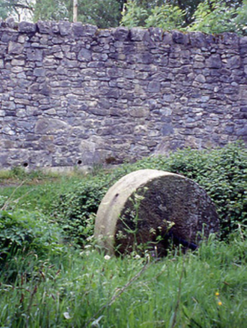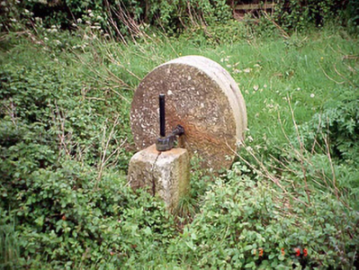 Culm crusher, c. 1855, comprising granite grinding stone with iron axial turning handle.