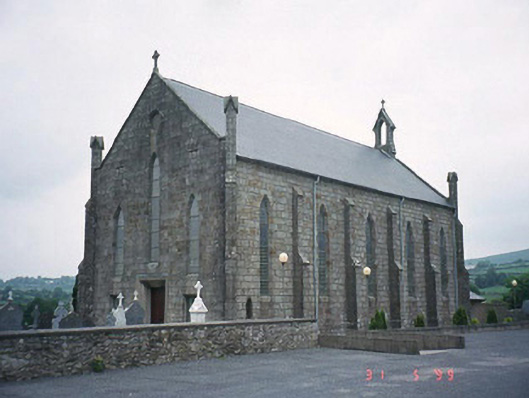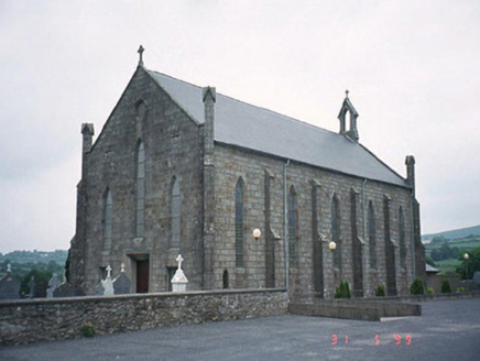 Detached five-bay single-cell granite built Gothic Revival Catholic church, c. 1840, with lancet-arch openings, diagonal buttresses and belfry to gable. Extended and remodelled internally, c. 1986, with sacristy projection added. Freestanding cast-iron bell-frame to site.