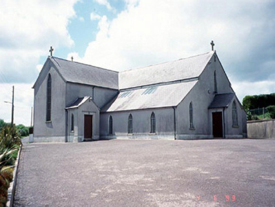 Detached Catholic church, c. 1815, on a cruciform plan with pointed-arch openings. Renovated and extended, c. 1875, with side aisles, arcaded crossing and belfry added. Renovated and re-rendered, c. 1975, with projecting porches added and interior re-ordered.