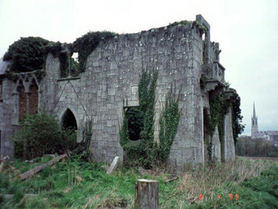 Remains of detached French Gothic style country house, c. 1856. Burnt down c. 1921. Now in ruins. Designed by Benjamin Woodward. Group of detached outbuildings to site.
