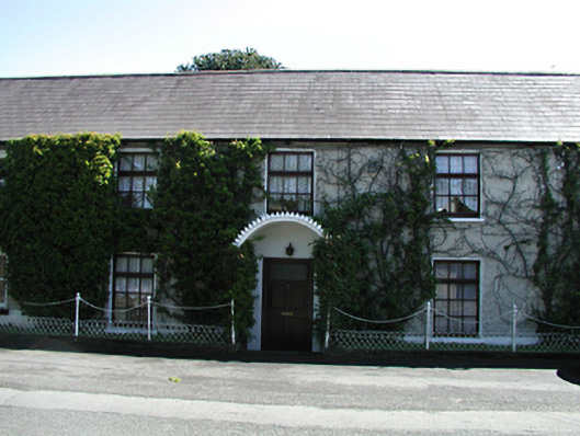 End-of-terrace five-bay two-storey house, c.1830. Roughcast rendered walls with replacement timber windows in altered openings and a replacement timber panelled door. Projecting cast-iron arched hood on slender cast-iron columns to entrance. Depressed-arched carriageway with replacement timber doors in smooth rendered bay to east. Blind end bay. Pitched slate roof with gable chimney stack. Original cast- and wrought-iron railings to street. Modern extensions to rere.
