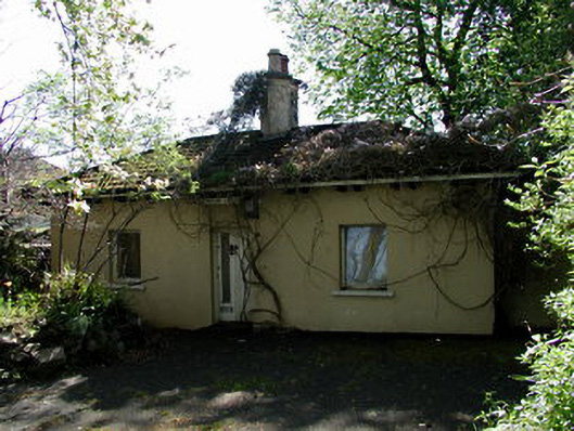 Detached three-bay single-storey former gate lodge, c.1830, subsequently in use as a house though currently unoccupied. Smooth rendered walls. Timber and iron casement windows. Replacement timber door. Hipped pantile roof with wide eaves and central chimney stack. Single-storey twentieth-century extension to rere. Channelled ashlar gate piers with cast-iron gates and railings, immediately to north.