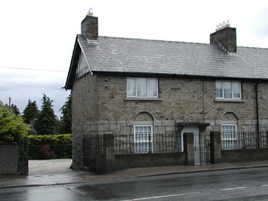 Semi-detached three-bay two-storey house, c.1905. uPVC casement windows set in snecked rock-faced granite ground floor and beige brick first floor walls. Ground floor windows have round-arched blind recesses above. Granite porch hood supported by granite corbels over central uPVC door. Pitched artificial slate roof with brick chimney stacks.