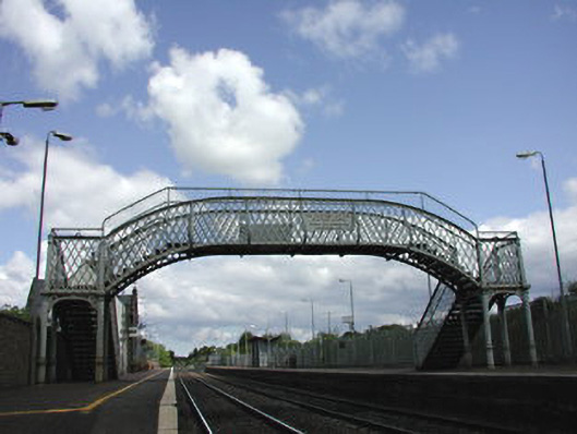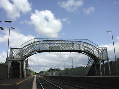 A footbridge supplied by E. [Edward] Manisty (established 1878) of Dundalk contributing positively to the group and setting values of the Hazelhatch and Celbridge Railway Station complex.