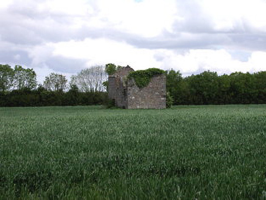 Detached two-bay two-storey former farm house, c.1800, now ruinous. Rubble stone walls. Stands isolated in farmland.
