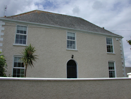 Detached three-bay two-storey over basement house, c.1760. Roughcast rendered walls, smooth rendered to east side, with render quoins. uPVC casement windows in shallow segmental-headed openings. Replacement glazed timber door and radial fanlight. Single-storey lean-to extension to west side. Hipped slate roof.