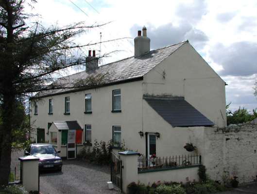 Detached five-bay two-storey house, c.1820. Smooth rendered walls. uPVC casement windows. Glazed uPVC door in projecting porch. Pitched slate roof. Westernmost bay with vehicular opening a later addition. Single-storey extension to north side.