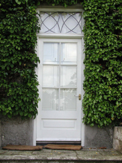 Detached multiple-bay former rectory, now in use as a private house, comprising five-bay two-storey over basement section to east, c.1720, three-bay two-storey section added to west, c.1820, with two-bay rere elevation, and single-storey extensions to east. Smooth rendered walls. Timber sash windows throughout, original to garden front. Timber panelled door with granite architrave surround, rectangular overlight and granite steps. Timber panelled and glazed timber doors elsewhere. Hipped slate roofs with rendered chimney stacks. Many original fixtures and fittings to interior. Large gardens to the north with lake and fountain, brick arch set in stone rubble to the northern boundary, a cast-iron water pump, and an historical Yew tree to the north-west. Surrounding stone rubble and brick walls with blind recessed depressed arches.
