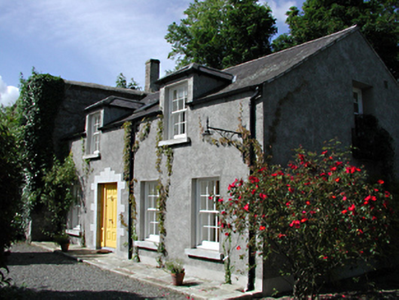 Detached four-bay single-storey with dormer attic former ecclesiastical building, built 1727, subsequently in use as a private house and now unoccupied. Roughcast rendered walls with smooth rendered base course. Timber sash windows with stone sills. Replacement timber panelled door with granite block and start surround. Pitched slate roof. Abuts medieval tower house to the south. Limestone commemorative plaque affixed to wall. Granite flagstones to front.