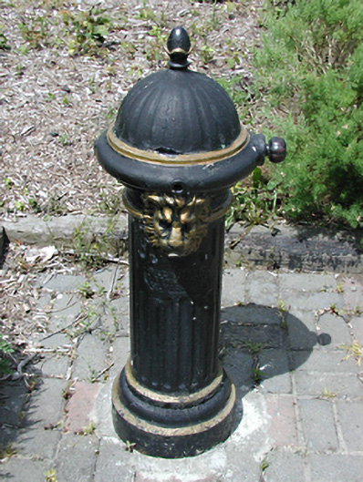 Prominently set at side of road, this cast-iron hydrant is a welcome addition to the streetscape.