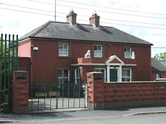 Detached three-bay two-storey house, c.1830. Roughcast rendered walls with smooth rendered edging and base course. Flat-roofed porch extension with parapet and moulded cornice. Porch incorporates timber panelled door with pediment, flanking engaged columns and sash windows. Timber sash windows with smooth rendered surrounds. Hipped slate roof with central red brick chimney stacks. Single-storey extensions to north and south elevations. Single-storey and two-storey outbuildings of coursed rubble construction with pitched slate roof to north.