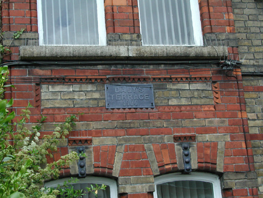Terraced two-bay two-storey former house, built 1904, now in use as office. Yellow brick walls with red brick dressings. Full-height red brick box bay window with yellow brick dressings. Timber sash windows with granite sills, paired to box bay. Timber panelled door with segmental-arched overlight. Pitched artificial slate roof with brick chimney stack and corbelled eaves. Cast-iron railings to street. Cast-iron terrace name plaque affixed to box bay.