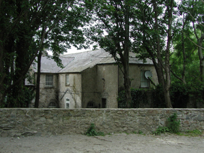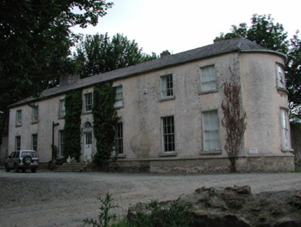 Detached seven-bay two-storey country house, c.1700, on a rectangular plan originally three-bay two-storey with two-bay two-storey flush end bays. Extended, c.1830. Sold, 1996. Hipped and bow-ended slate roof with clay ridge tiles, rendered chimney stacks on slate hung bases having stepped capping supporting terracotta pots, and cast-iron rainwater goods on rendered red brick header bond eaves. Roughcast walls on cut-granite chamfered cushion course on plinth. Segmental-headed central door opening with five cut-granite steps, cut-granite block-and-start surround centred on keystone framing glazed timber panelled door having fanlight. Square-headed window openings with cut-granite sills, and concealed dressings framing six-over-six (ground floor) or six-over-three (first floor) timber sash windows. Square-headed window openings in tripartite arrangement (west) with cut-granite sills, timber mullions, and concealed dressings framing six-over-six (ground floor) or six-over-three (first floor) timber sash windows having two-over-two (ground floor) or two-over-one (first floor) sidelights. Set in landscaped grounds.