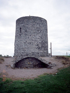 Windmill, c.1800, with rubble stone walls, now in ruined condition. WALLS:Random rubble limestone. OPENINGS: Segmental headed, limestone rubble reveals with mild steel gate enclosing entrance. Square headed narrow window openings.