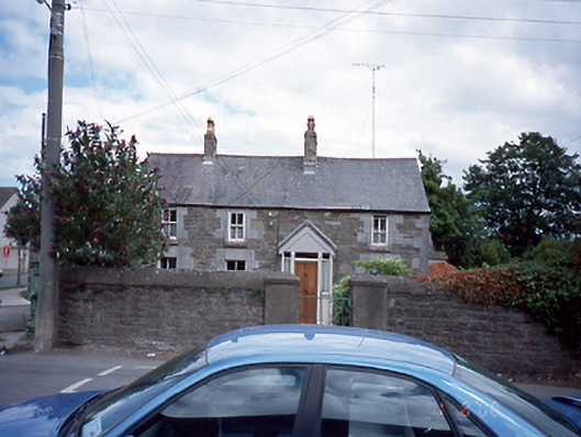 Detached four-bay two-storey house, c.1860, with projecting entrance porch and original fenestration. Outbuildings to rear. ROOF:Double-pitched slate roof with terracotta ridge tiles; brick chimney stacks with terracotta pots; single-storey lean-to with slates to rear. WALLS: Coursed rubble stone with tooled limestone quoining; pebble-dashed side walls; nap rendered; canted bay window to right side elevation. OPENINGS: Rusticated limestone dressed window openings; granite cills; 2/2 timber sash windows; tall projecting porch with a rendered base; tongue and grooved timber glazed sidelights; stained glass overlights; timber door, c.1980