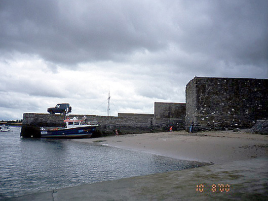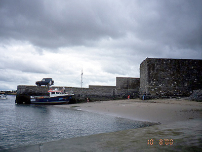 Roughly dressed rubble stone jetty, c.1840. Ruined roughly dressed rubble stone outbuildings to site.