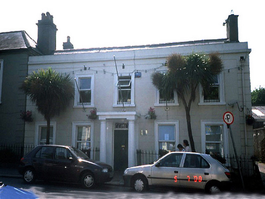 End-of-terrace five-bay two-storey house, c.1825, with prostyle diastyle Doric portico to centre. Refenestrated and extended to rear, c.1980, comprising two-bay two-storey return. One of a pair with 11344028. ROOF: Double-pitched; behind nap rendered parapet; slate; concrete ridge tiles; nap rendered chimney stacks; clay pots; cast-iron rainwater goods. WALLS: Nap rendered; ruled and lined; quoined piers; painted; roughcast to side elevations; nap rendered to return; unpainted. OPENINGS: Square-headed; stone sills; cast-iron sill guards; moulded architraves; replacement uPVC windows; timber panelled door; 'tear-drop' fanlight; Doric portico .