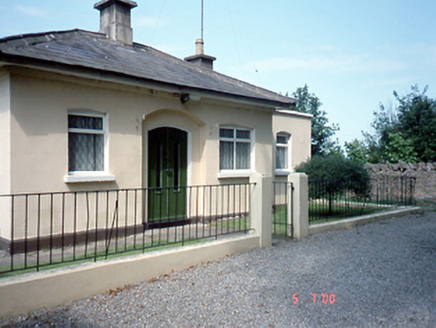 Detached three-bay single-storey gate lodge, c.1850. Extensions c.1980 to north and east. Set behind entrance gates, comprising cast-iron double entrance gates and single pedestrian gates set in ashlar piers. Flanked by curved ashlar plinth walls with cast-iron railings, terminated by ashlar piers. ROOF: Double-pitched and hipped; slate with terracotta ridge tiles; single rendered chimney stack. WALLS: Nap rendered. OPENINGS: Segmental headed windows; rendered reveals; granite cills; replacement uPVC windows; segmental headed door; recessed opening; timber and glazed door.