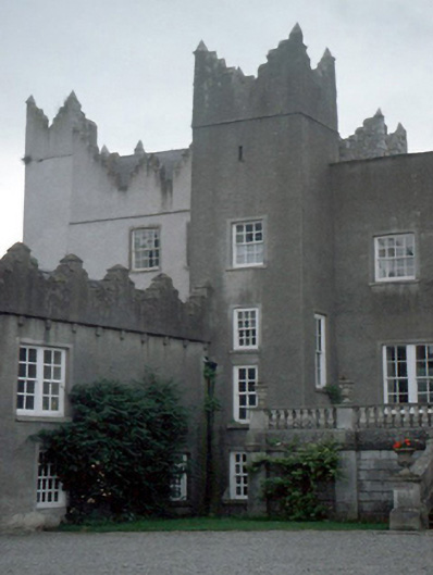 Attached three-bay four-storey medieval tower house, c.1400, with base batter and crow stepped crenellated parapet. Single-bay five-storey crenellated corner turret on a square plan to south west. Renovated and openings remodelled, 1738. Re-rendered c.1990. ROOF: Double pitched slate set behind crow-stepped crenellated parapet. WALLS: Roughcast rendered over rubble stone construction. Moulded string course to top floors. OPENINGS:Timber sash windows set in openings remodelled, 1738. Nap rendered surrounds.