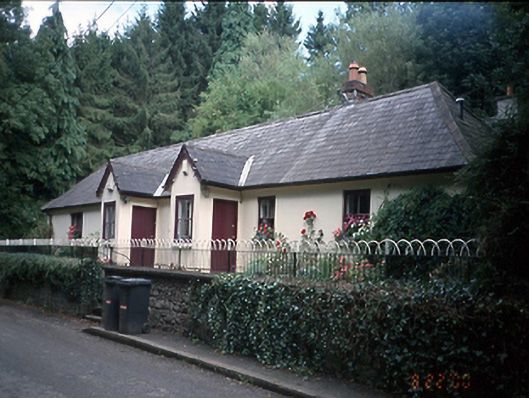 Detached seven-bay single-storey school house, c.1880, with two gable-fronted projecting porches. Now in use as pair of houses. ROOF: Hipped slate roof with clay ridge tiles, red brick chimney stack with stretcher course and two moulded clay pots, uPVC rainwater goods. WALLS: Nap rendered. OPENINGS: Square headed window openings, rendered soffits, reveals and concrete cills surrounding 2/2 timber sash windows, bipartite timber casement window and four fixed pane timber windows with moulded architrave; blocked up window opening to side elevation; two square headed door opeings with rendered soffits reveals, rendered doorsteps and modern tongue & grooved panelled doors opening into projecting porches.