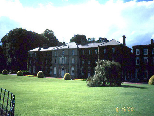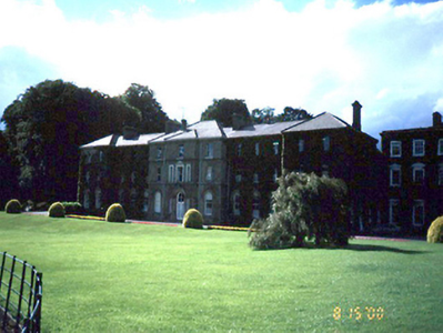 Semi-detached thirteen-bay three-storey college, c.1850, with advanced central and end bays. ROOF: Hipped slate roofs with clay ridge tiles; five rendered chimney stacks with plain clay pots; cast-iron rainwater goods; subsidiary monopitched and lean-to extensions roof to rear. WALLS: Rough cast rendered to all elevations with granite plinth and cornice supporting gutters. OPENINGS: Roundheaded ground floor window openings with rendered arches each joined by granite string course at springing of arch; stepped rendered soffits, reveals and granite cills; 4/4 round headed timber sash windows with ogee horns; square headed first and second floor window openings; segmental headed first floor openings to central block flanking tri-partite window arrangement; each with rendered soffit, reveals and granite cills; 2/2 timber sash windows with ogee horns; granite doorcase comprising stepped bull nose moulded verticals supporting granite arch with keystone joining soffit of first floor cill course; granite steps; double leaf glazed timber door and four paned fanlight; flanking sidelights.