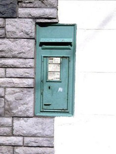 Cast-iron wall-mounted letter box, c. 1915, with moulded frame. Inscribed with manufacturer's name 'W. T. Allen & Co, London'.
