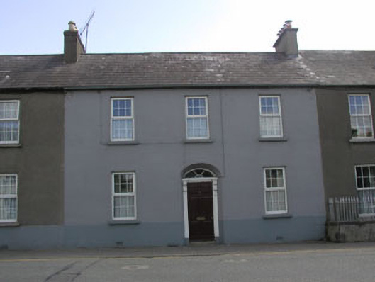 Terraced three-bay two-storey house, c. 1871, with segmental-headed fanlit doorcase and two-storey return.