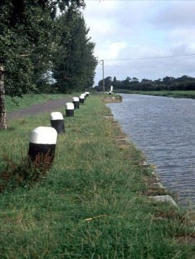 Group of twelve painted timber bollards, c. 1800, to both sides of canal.
