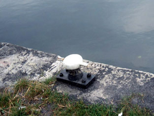 Group of six cast-iron mooring bollards, c. 1800, flanking canal lock. Group of timber mooring posts to south-east of Augustus Bridge.